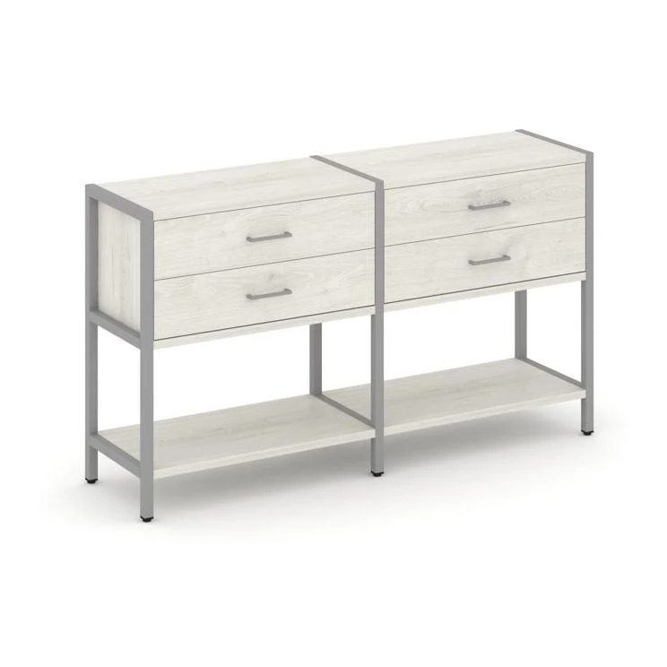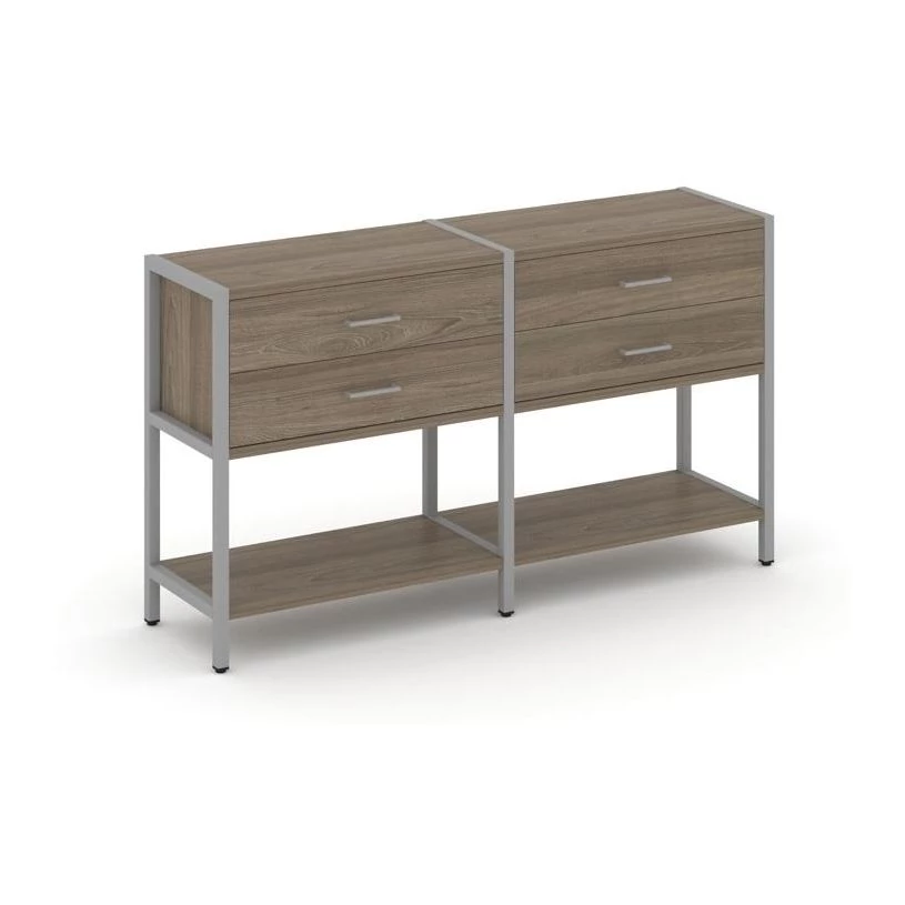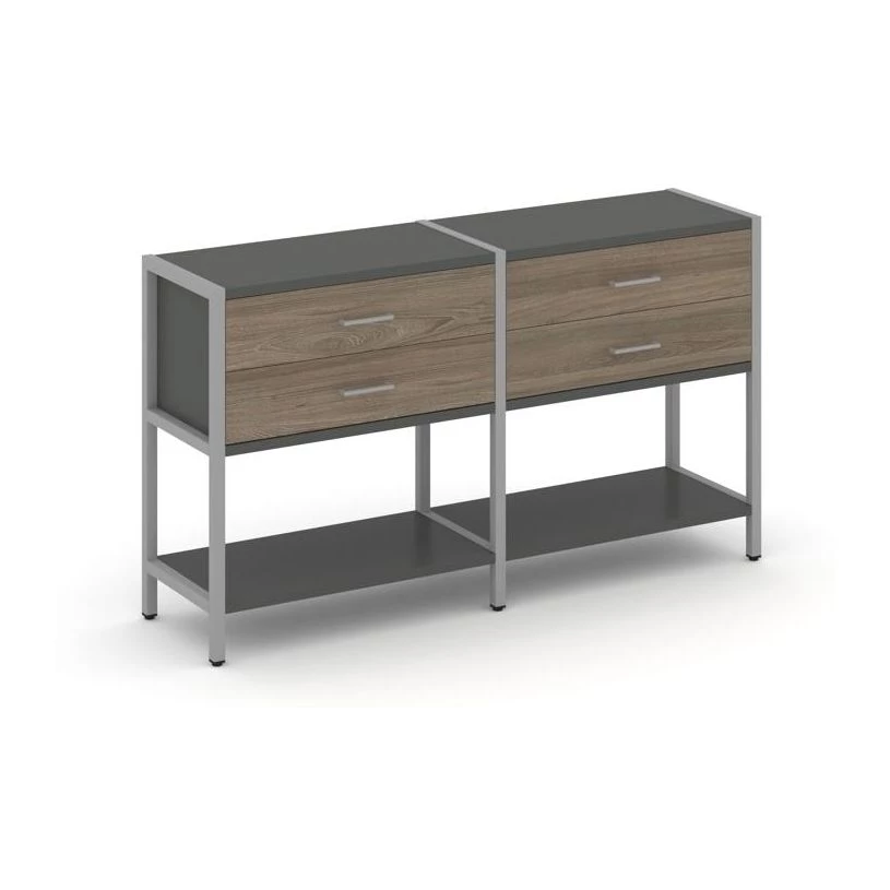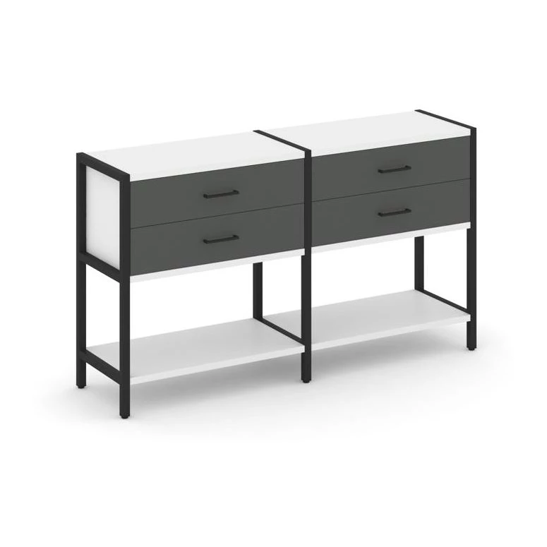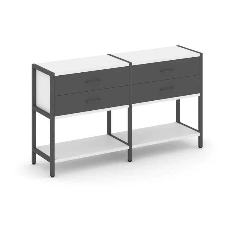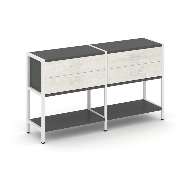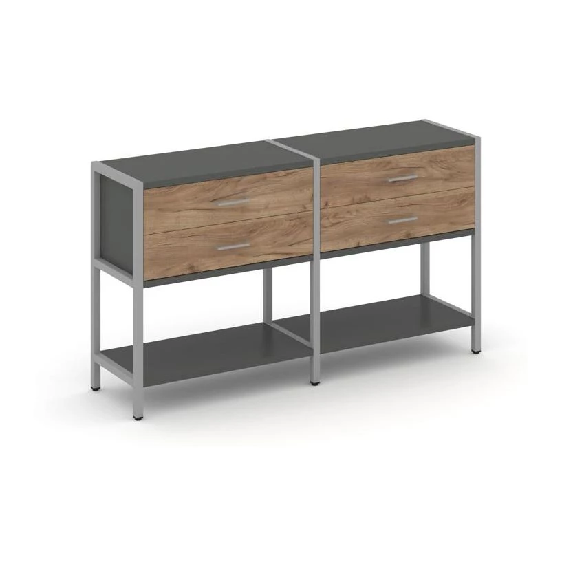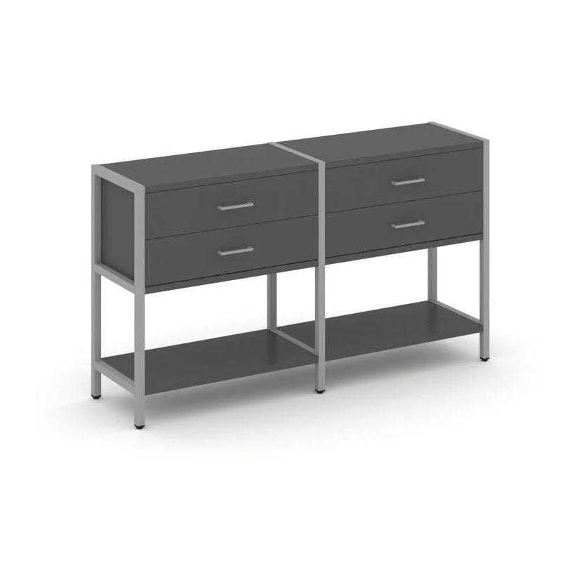 - Двухсекционный стеллаж двухярусный с ящиками 1590х400х879 Shelf System