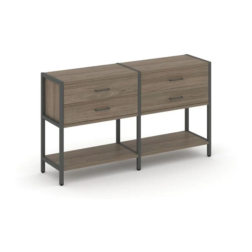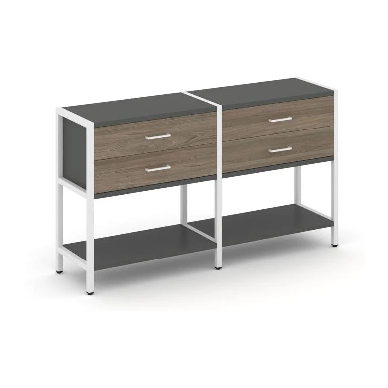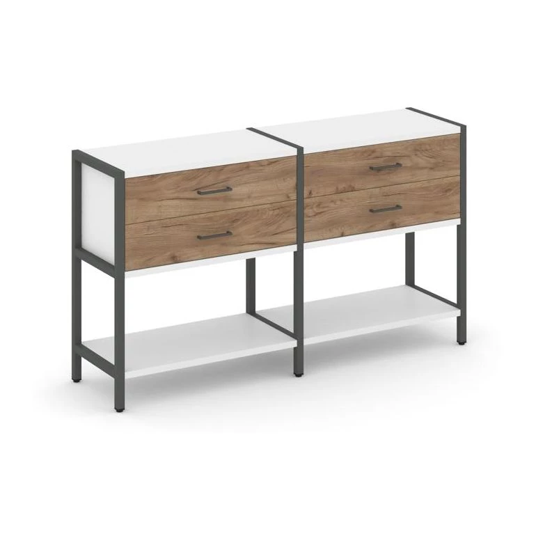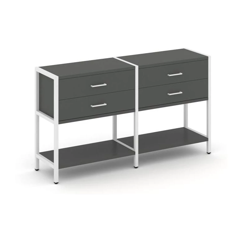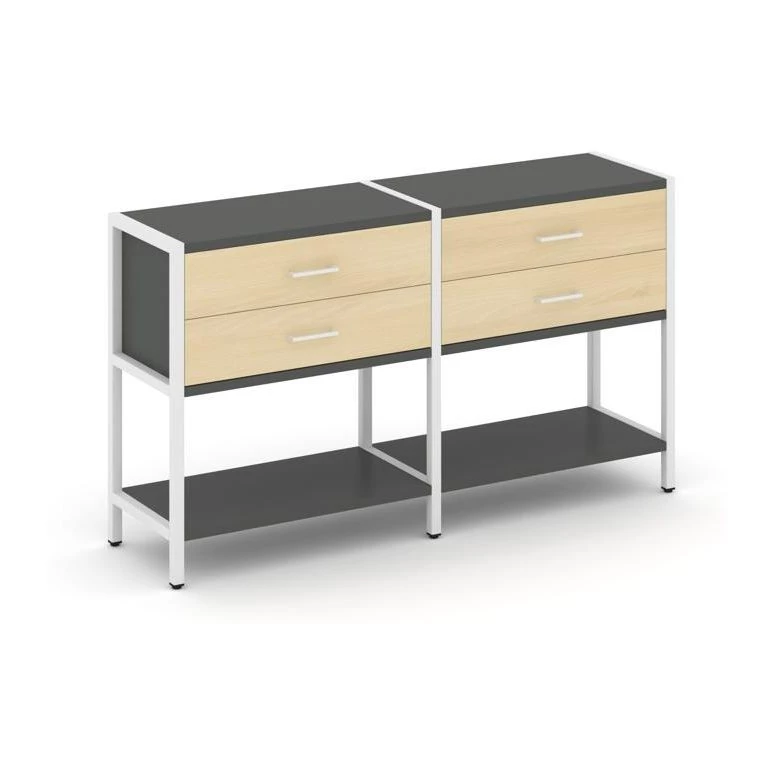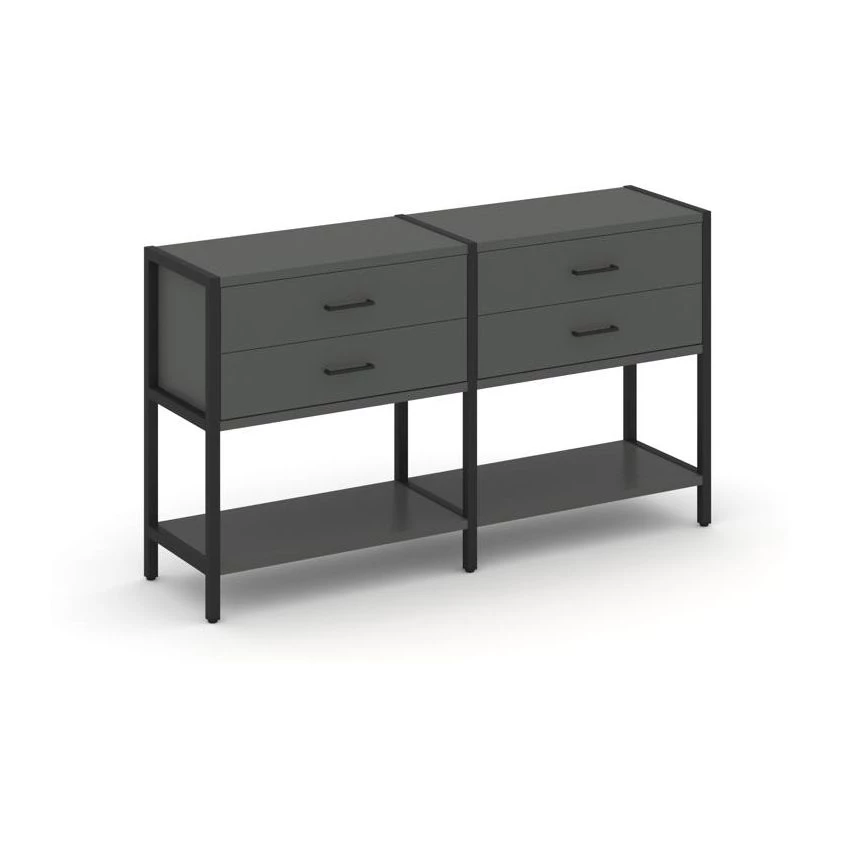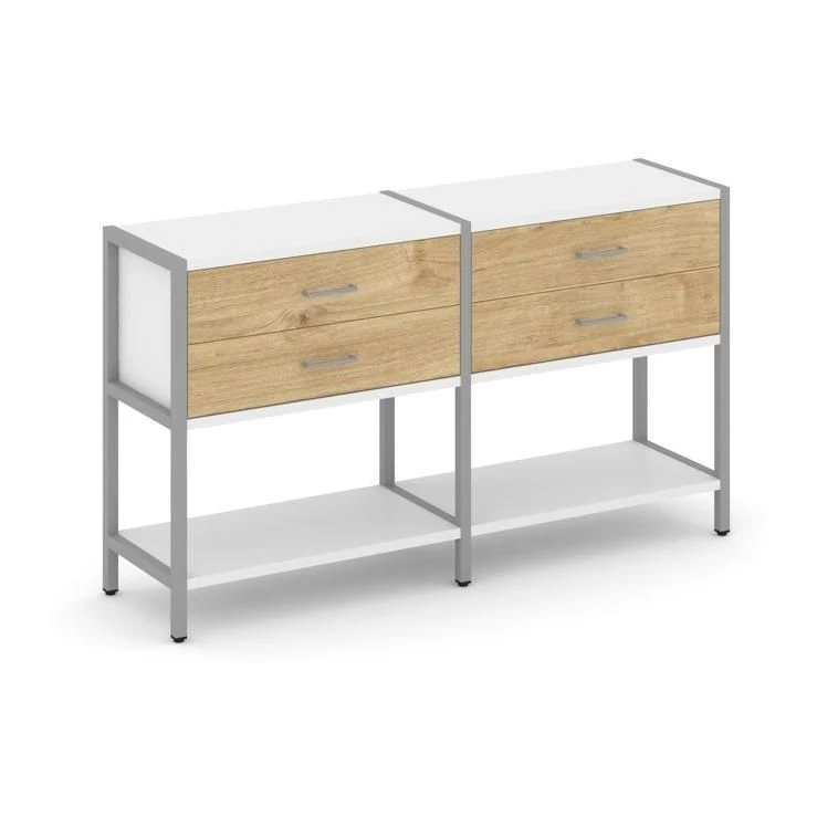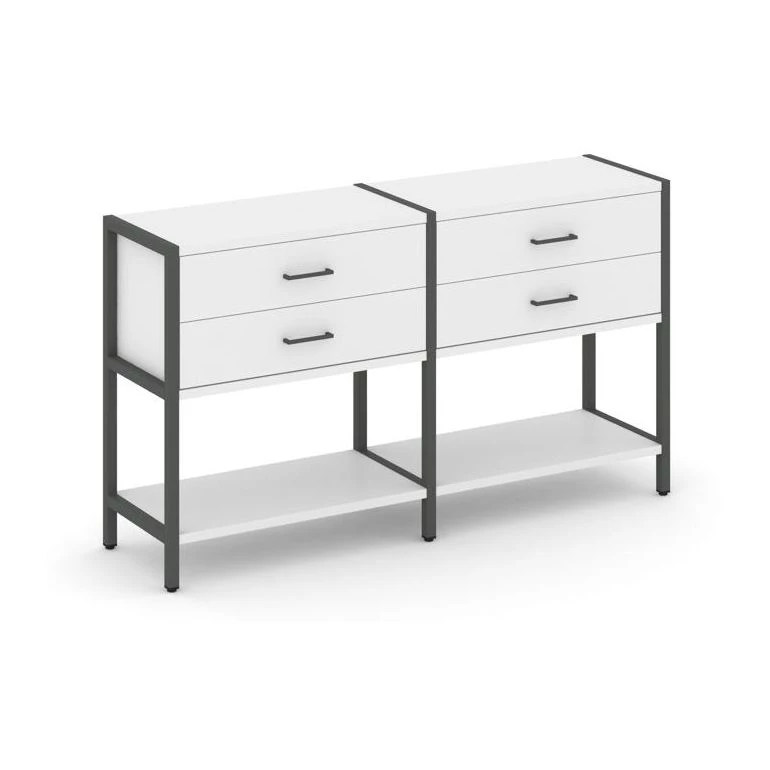- Двухсекционный стеллаж двухярусный с ящиками 1590х400х879 Shelf System
