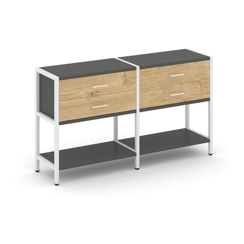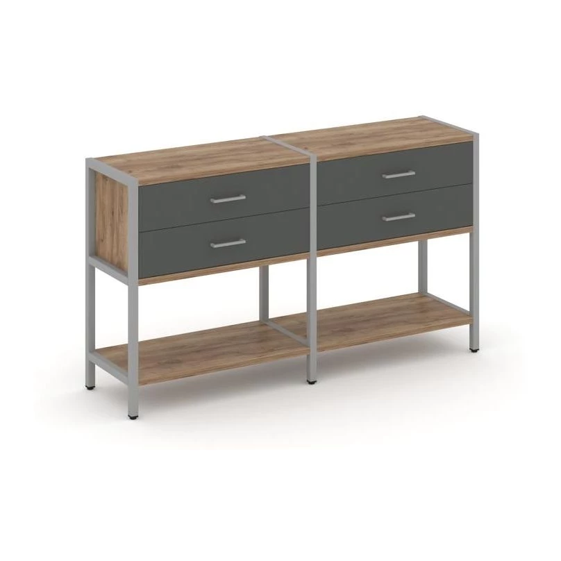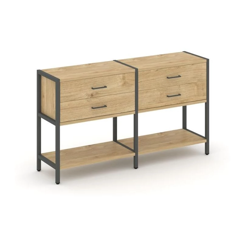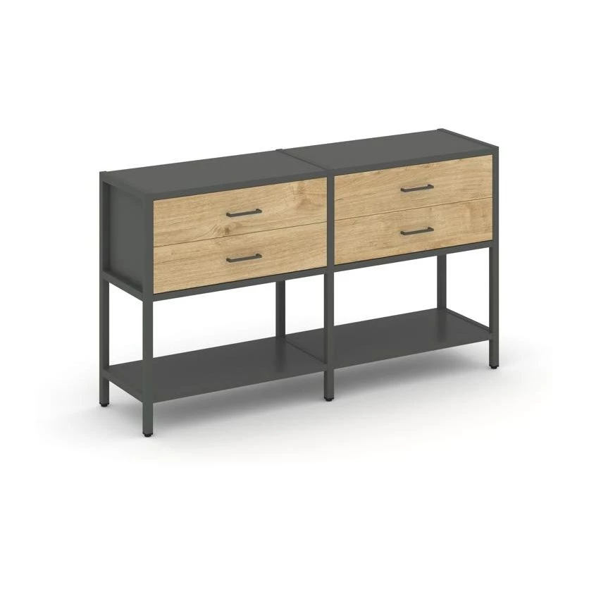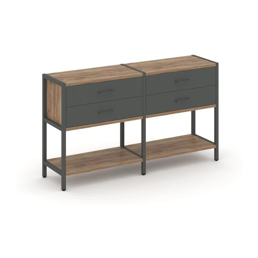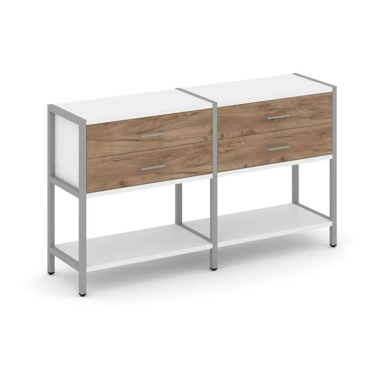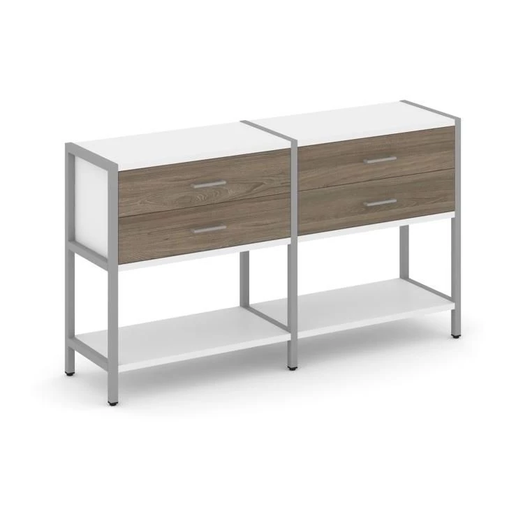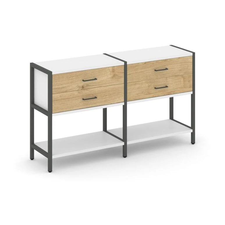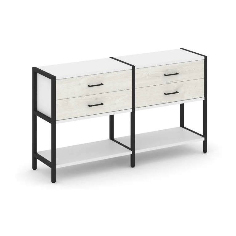 - Двухсекционный стеллаж двухярусный с ящиками 1590х400х879 Shelf System