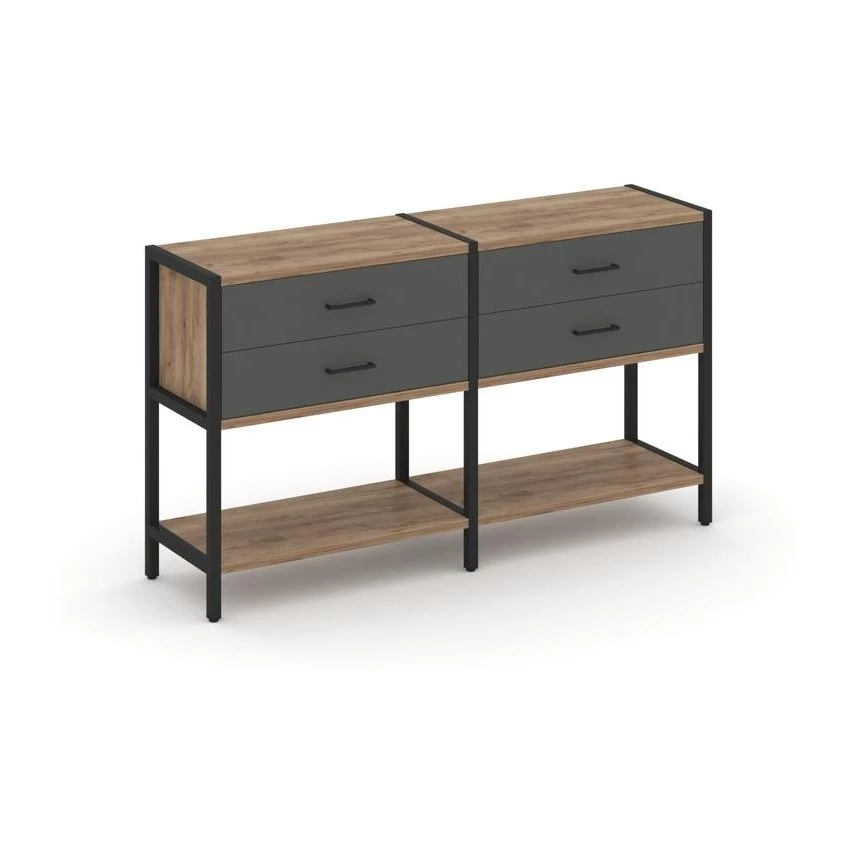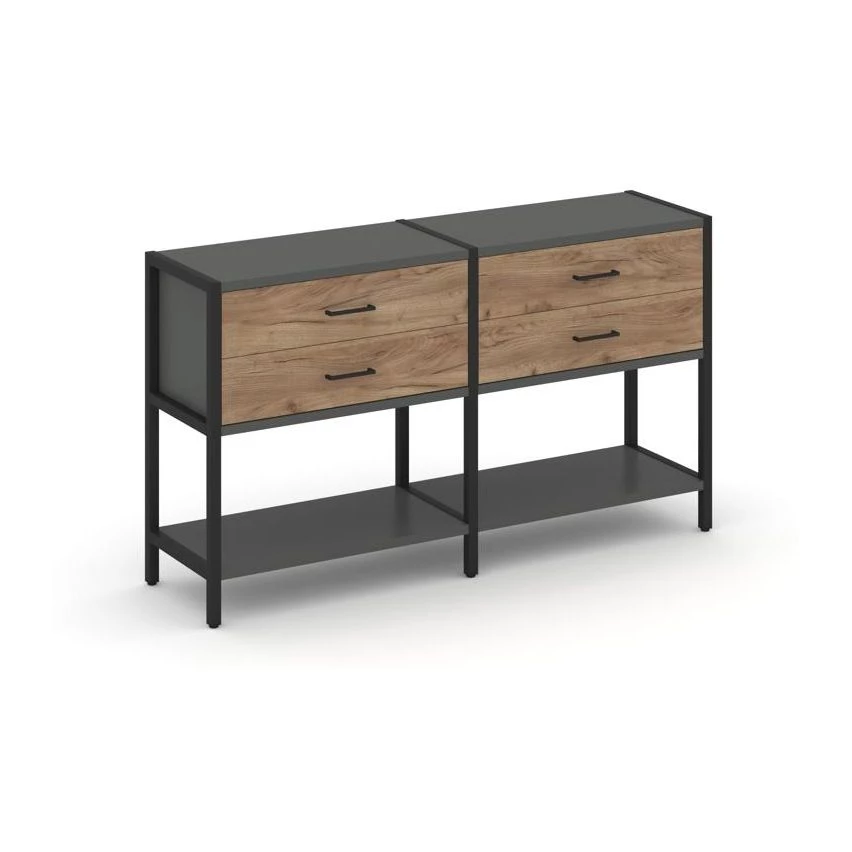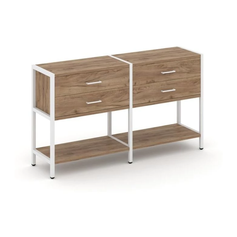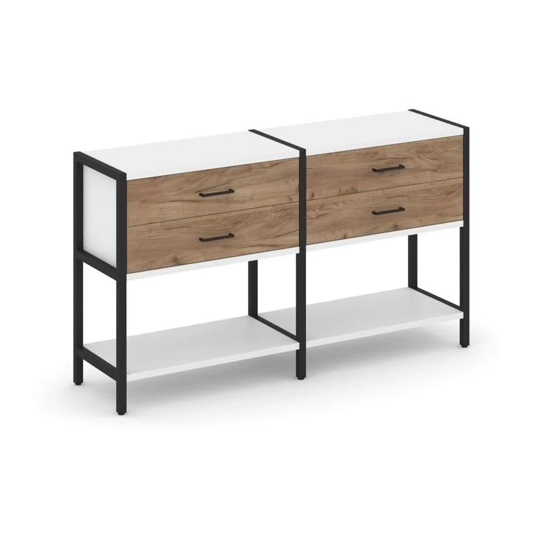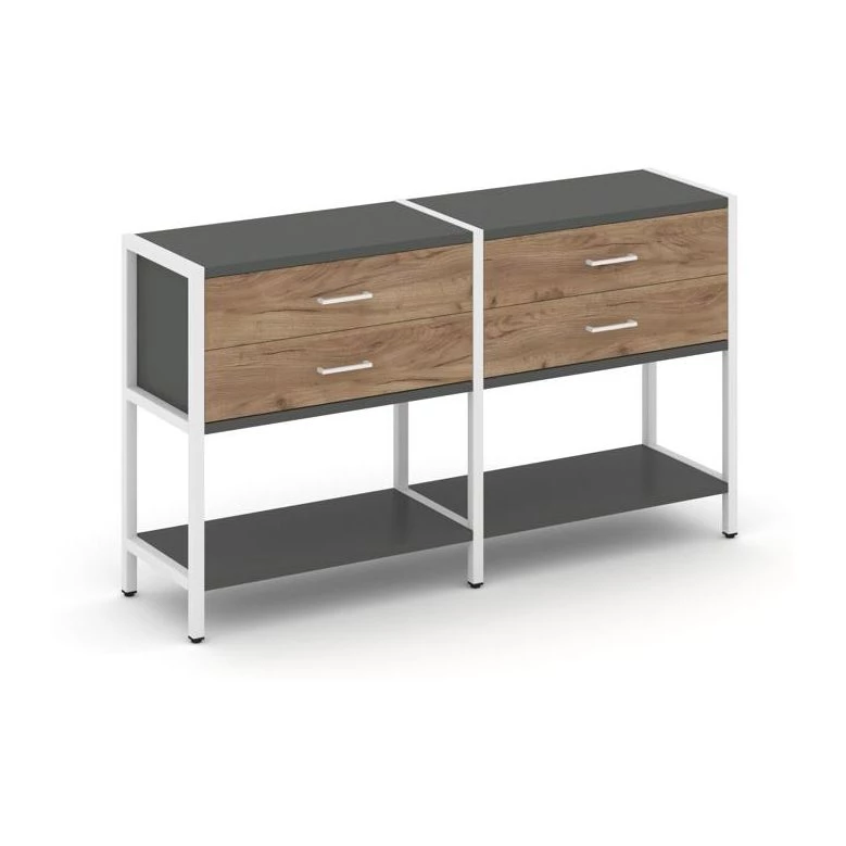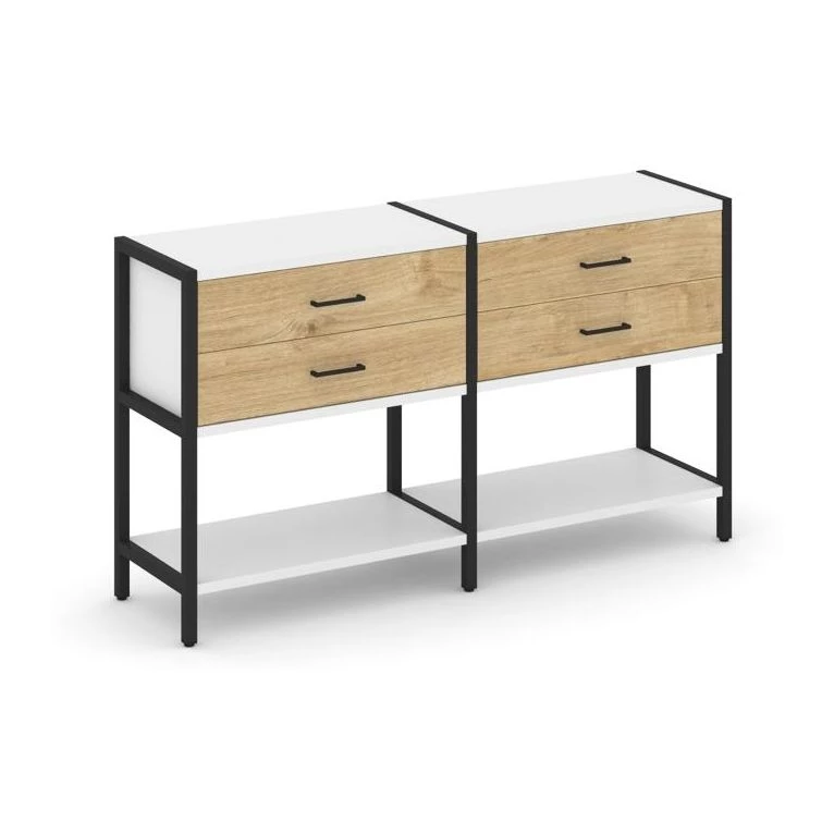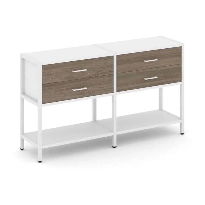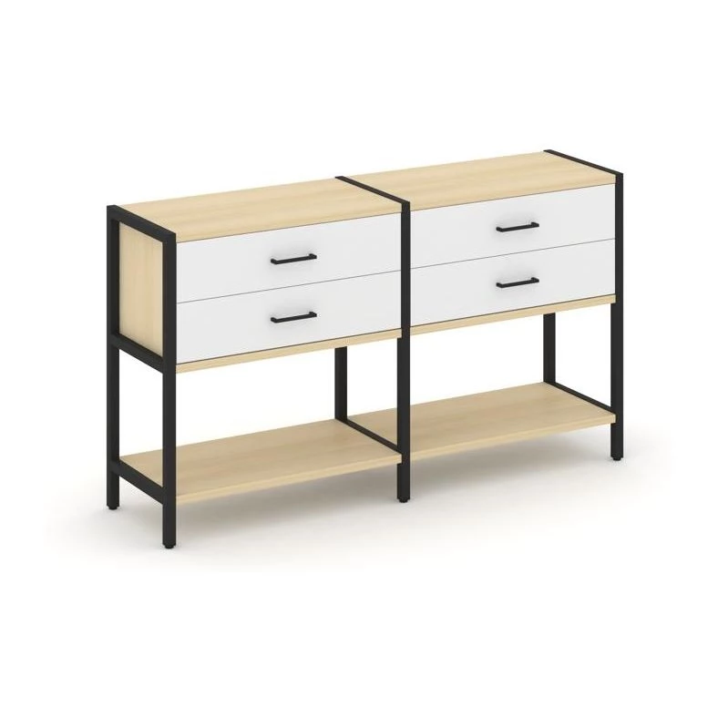 - Двухсекционный стеллаж двухярусный с ящиками 1590х400х879 Shelf System