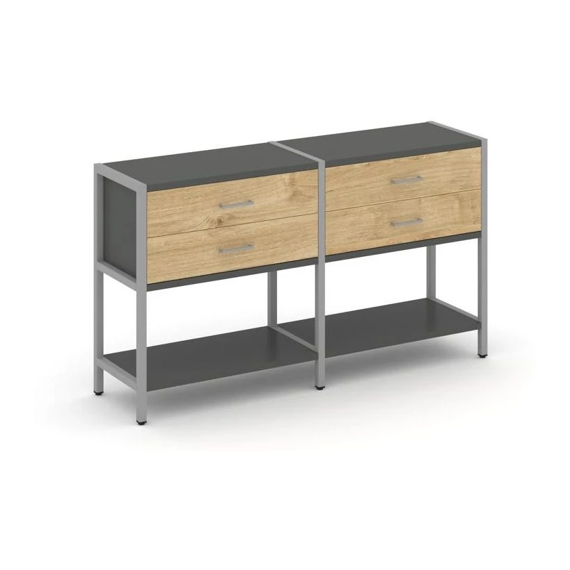 Двухсекционный стеллаж двухярусный с ящиками 1590х400х879 Shelf System