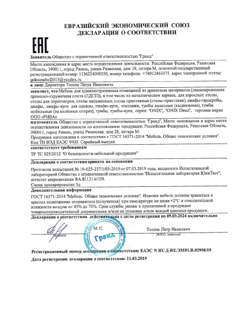 Все наши товары поставляются с гарантией 12 месяцев на все производственные дефекты с момента выдачи гарантийного талона или накладной, исключением являются акустические кабины (24 месяца) и некоторые модели эргономичных кресел (от 2 до 10 лет).