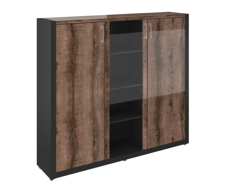 Двери: ЛДСП; прозрачное стекло в рамке из ЛДСП