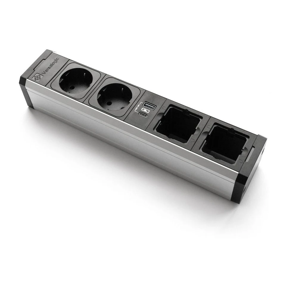 Розеточный блок с рамками 31,6х5,3х6,5 Versapro Алюминий/Черный