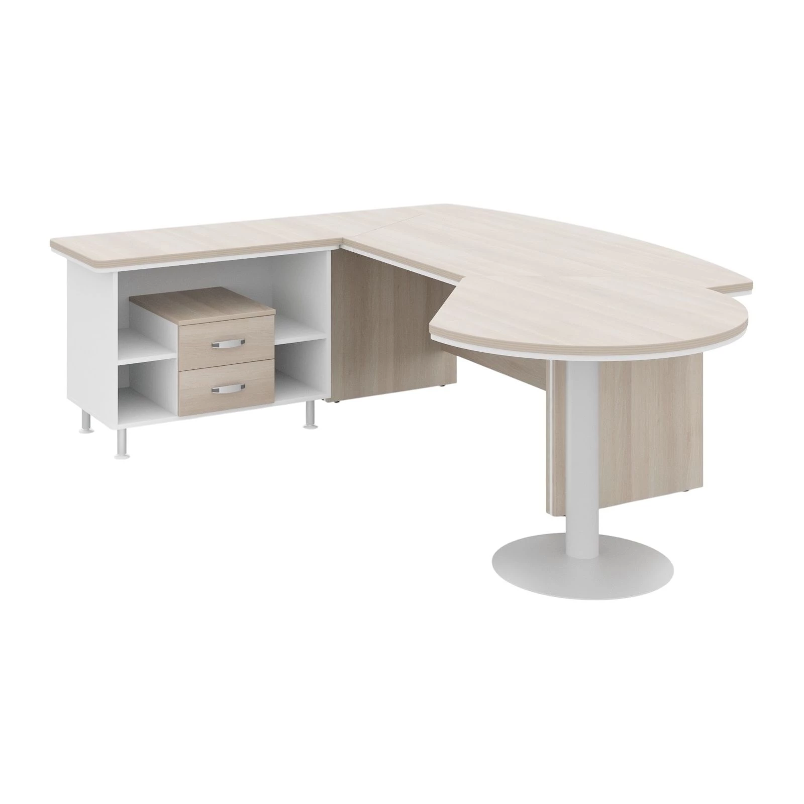 Стол руководителя угловой с брифингом L 255х205х76 Berlin Director Акация светлая/Белый премиум