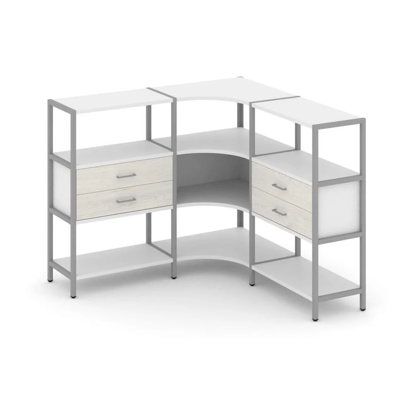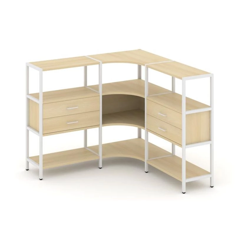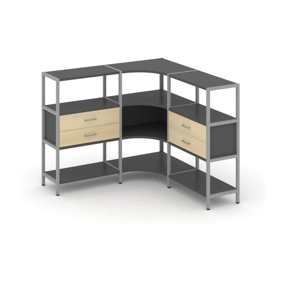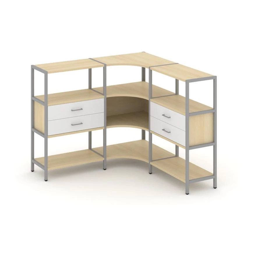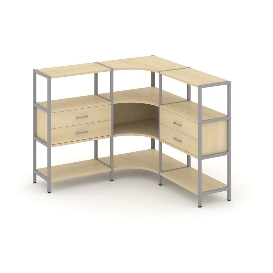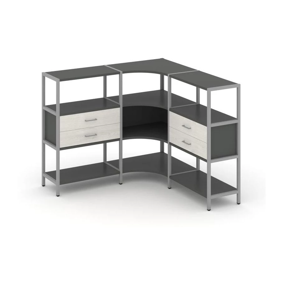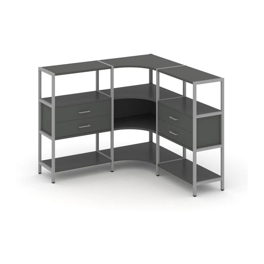Трехсекционный угловой стеллаж трехярусный с ящиками 1590х1590х1246 Shelf System