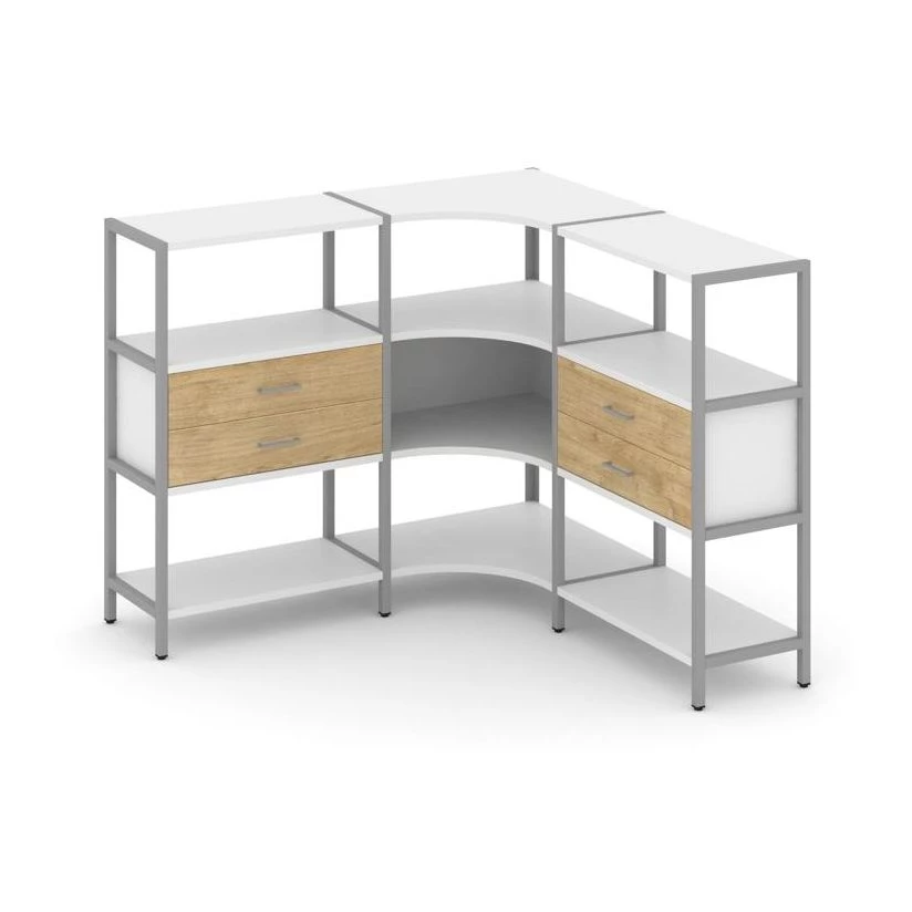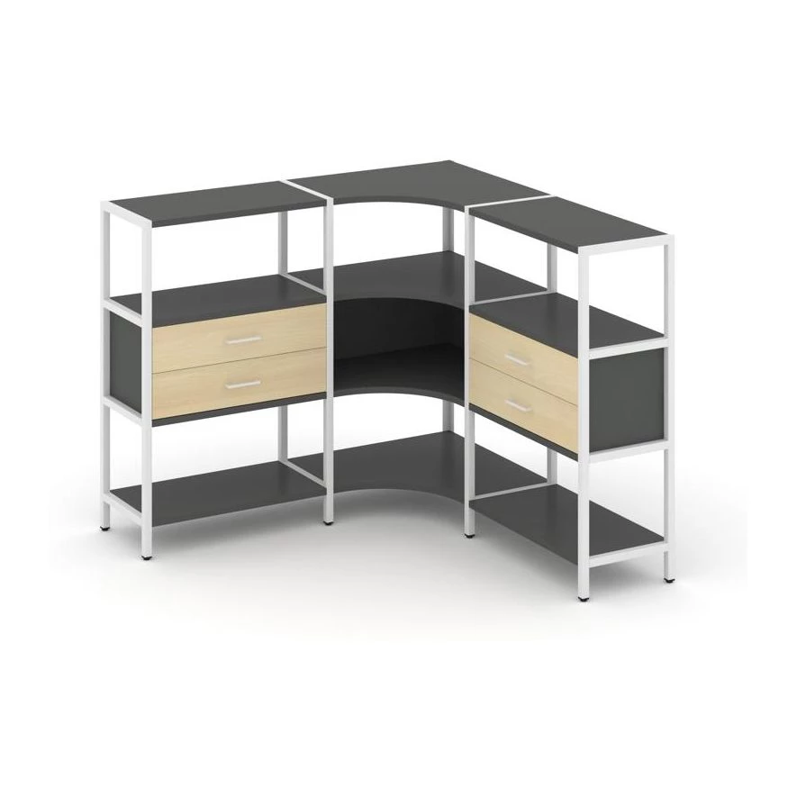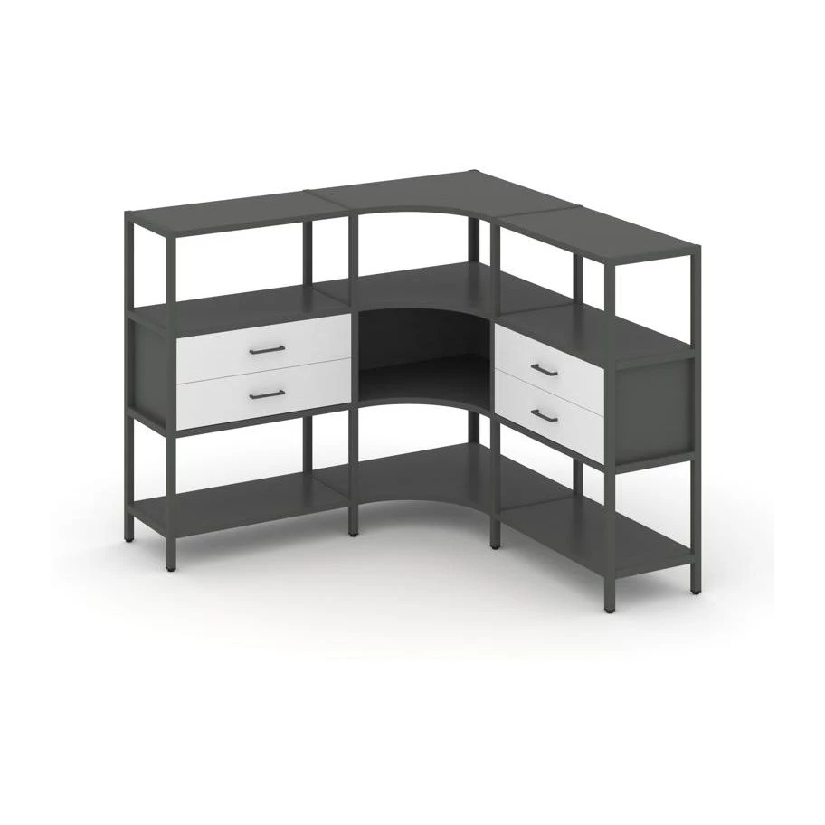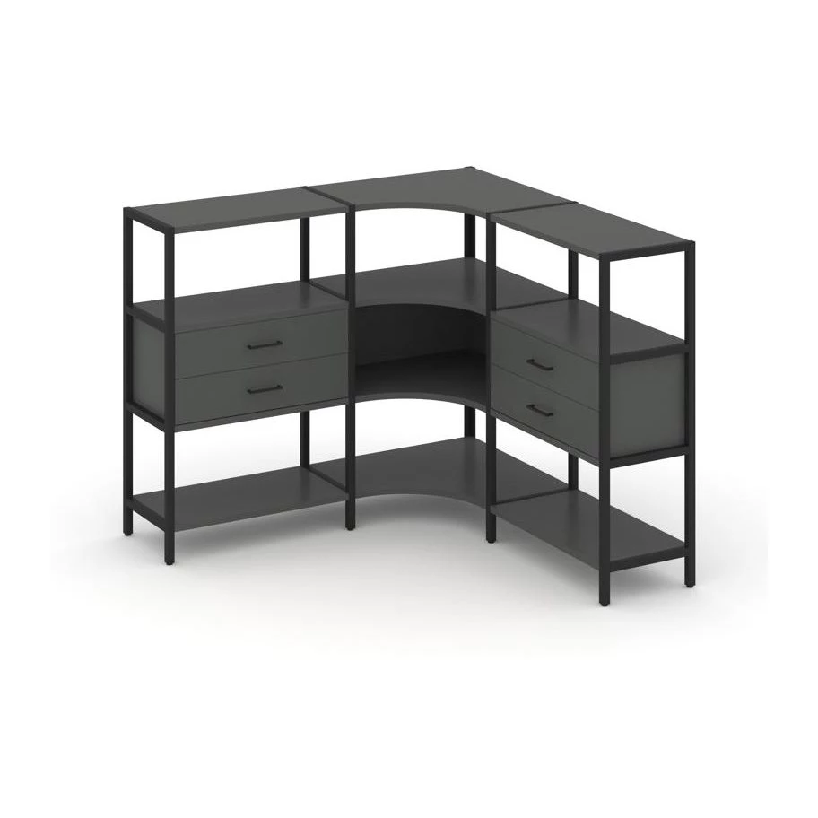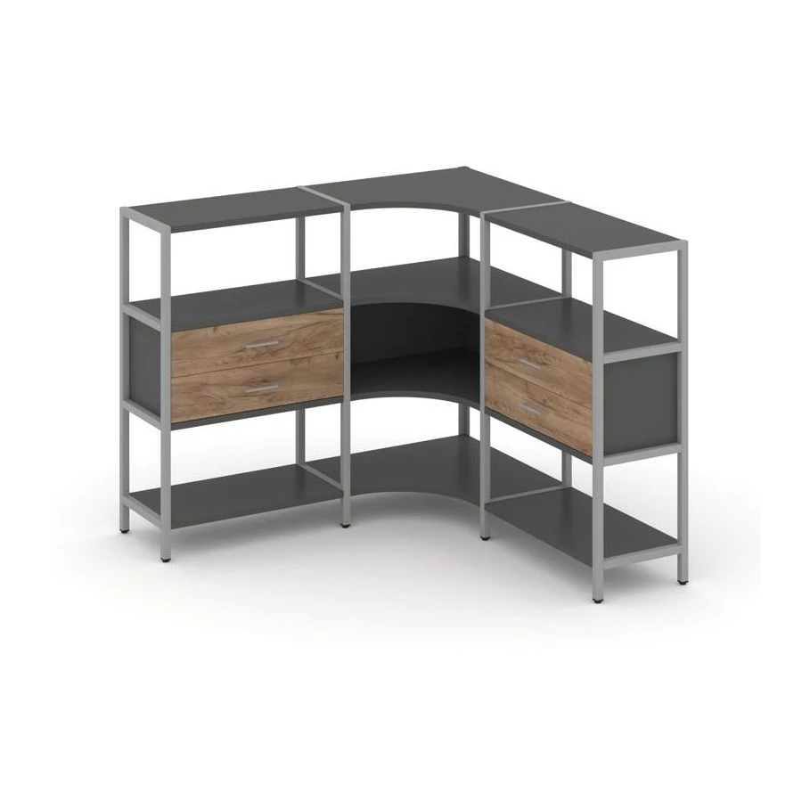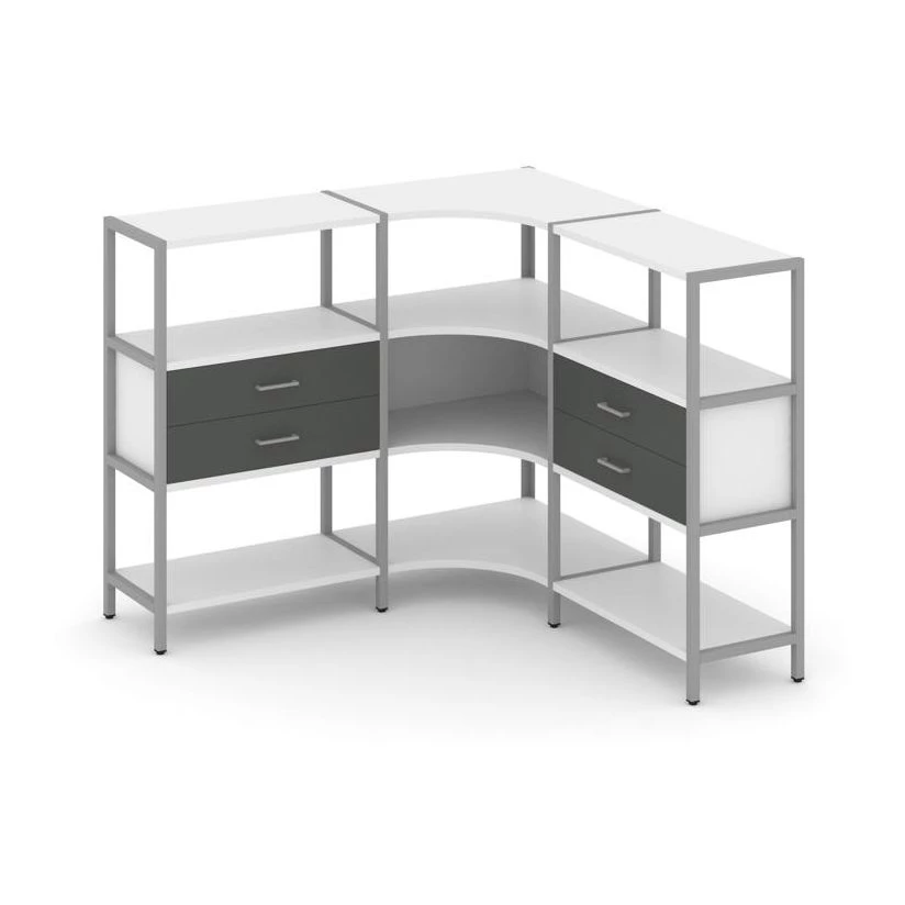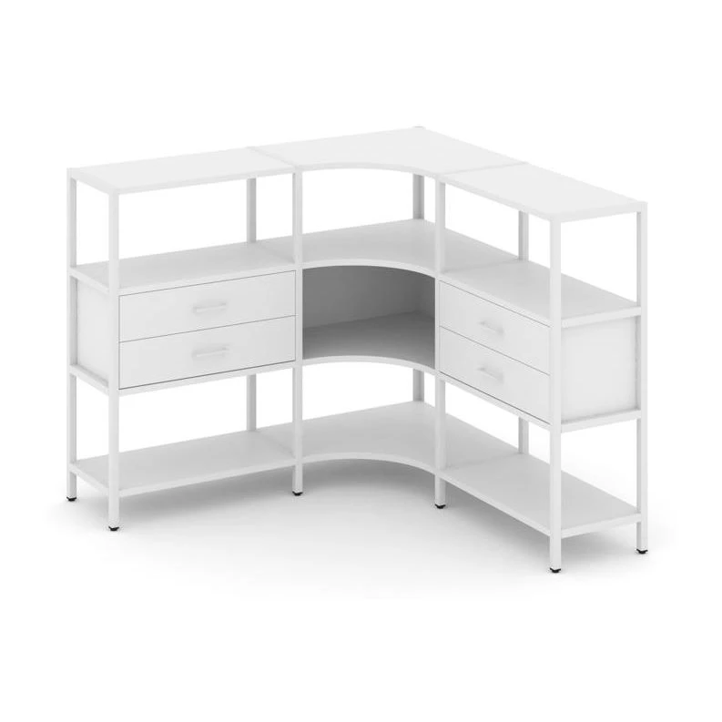 Трехсекционный угловой стеллаж трехярусный с ящиками 1590х1590х1246 Shelf System