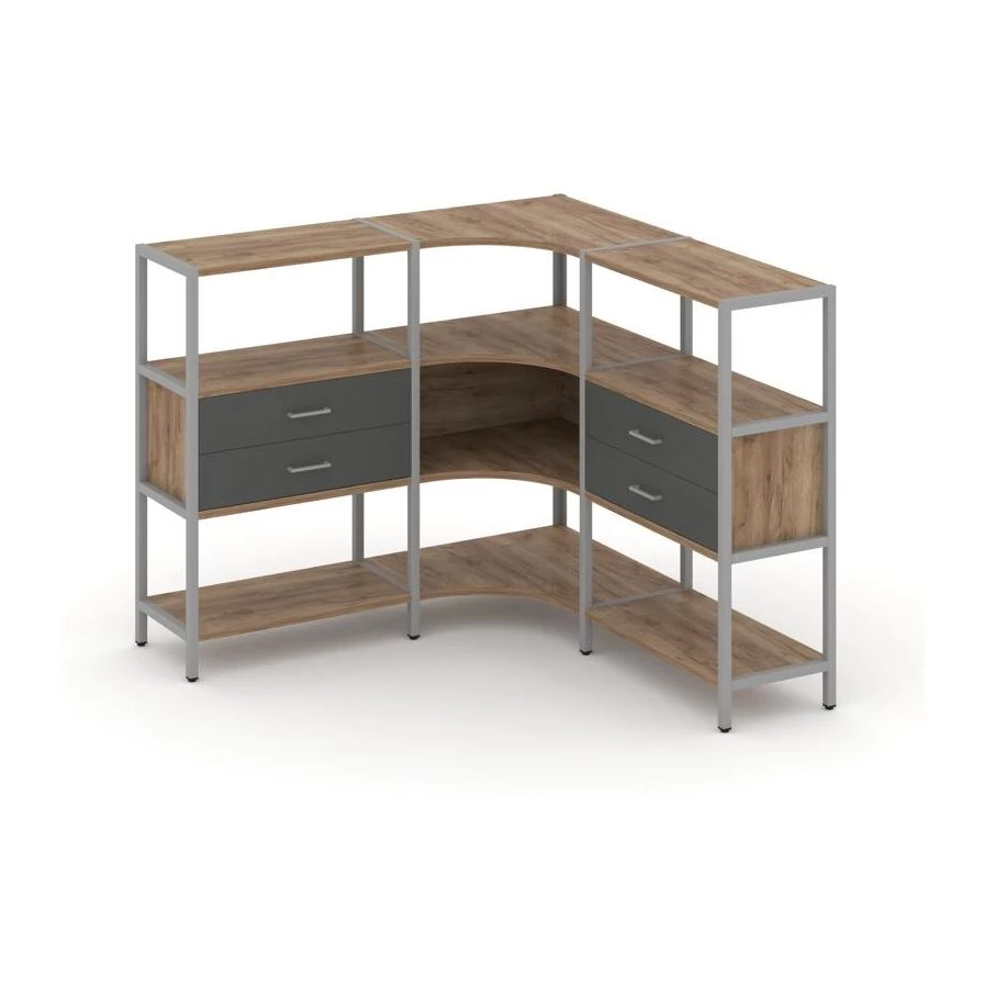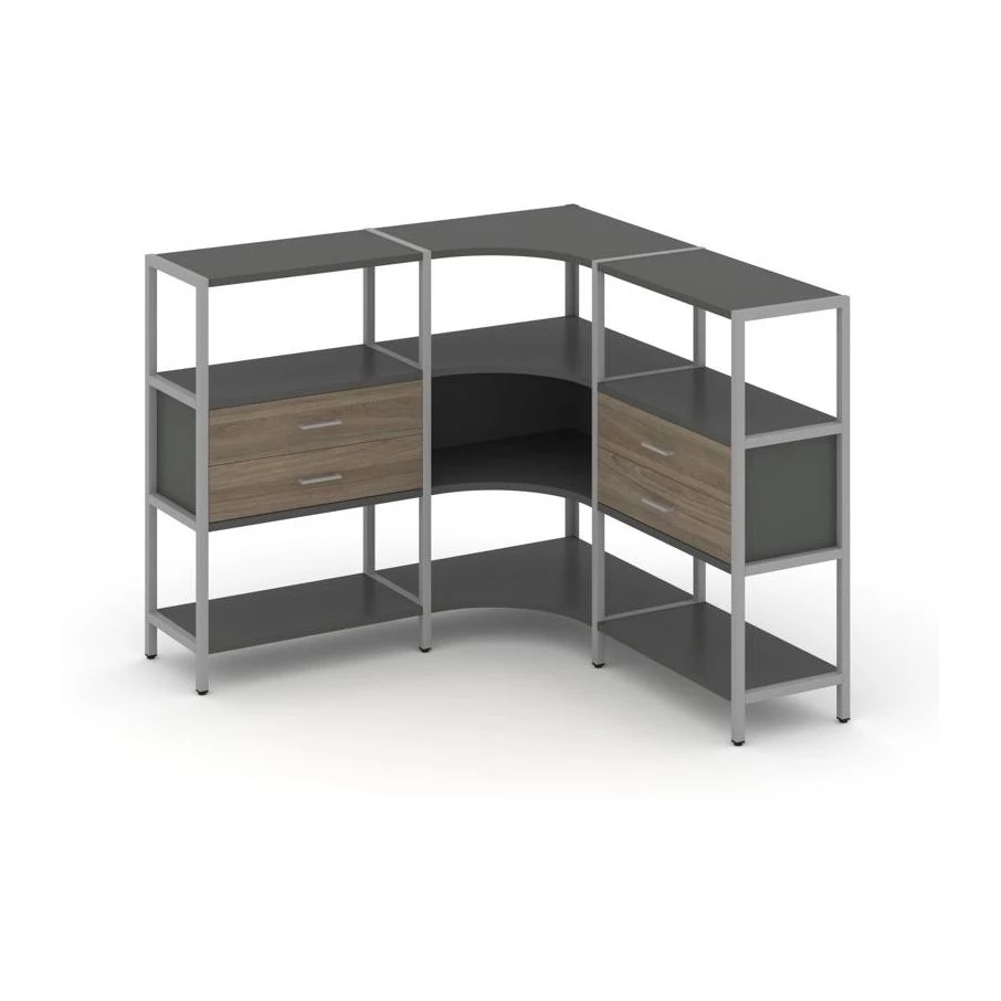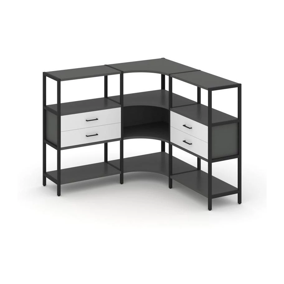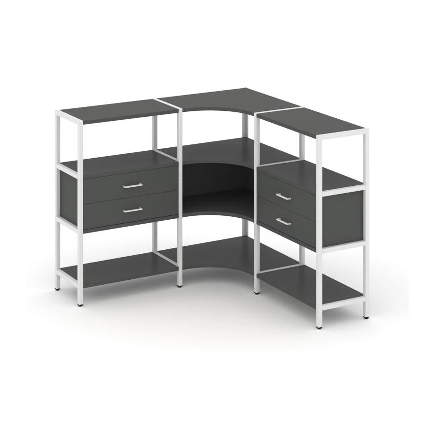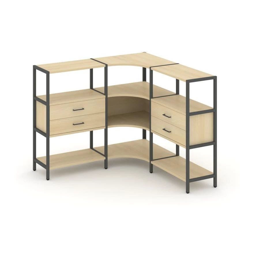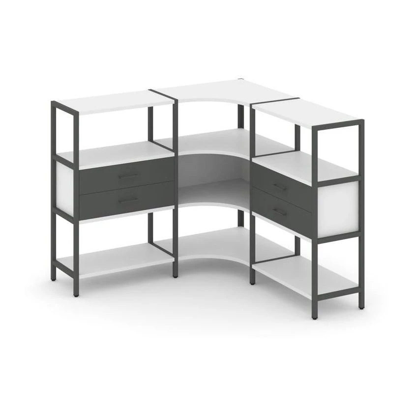 Трехсекционный угловой стеллаж трехярусный с ящиками 1590х1590х1246 Shelf System