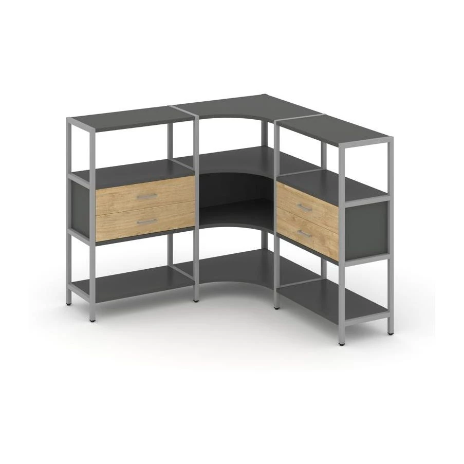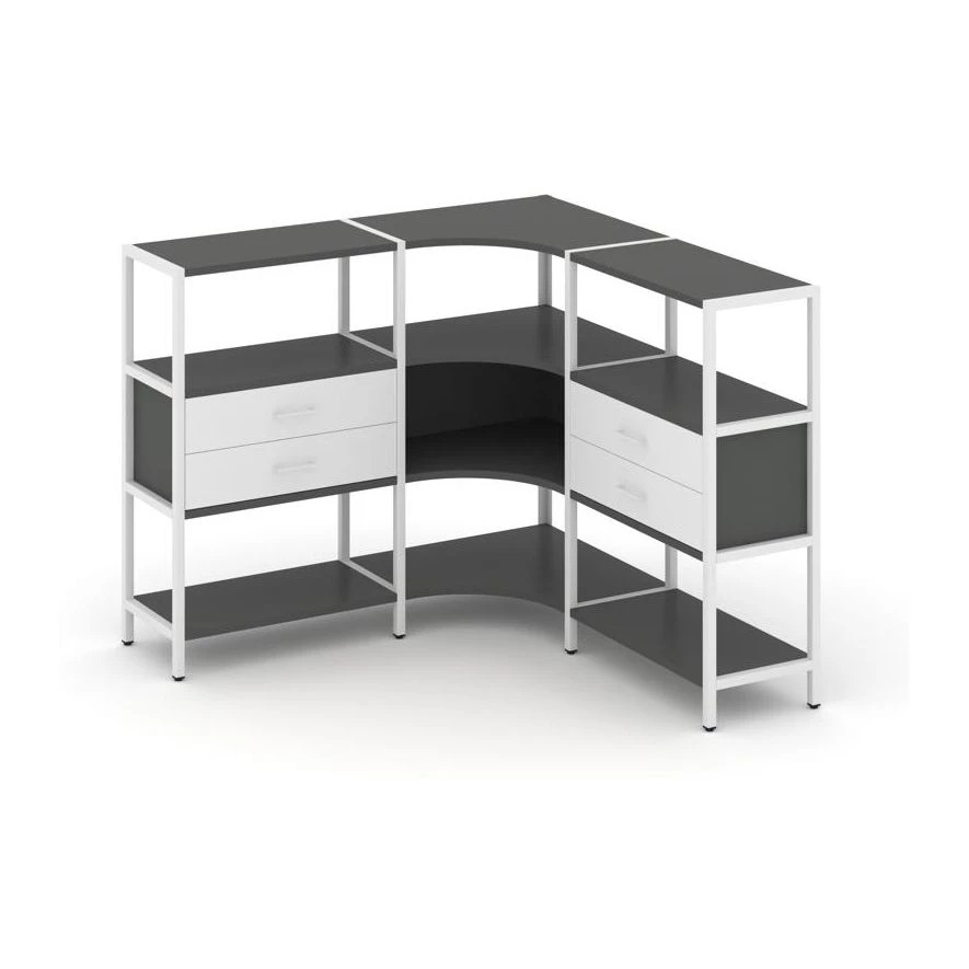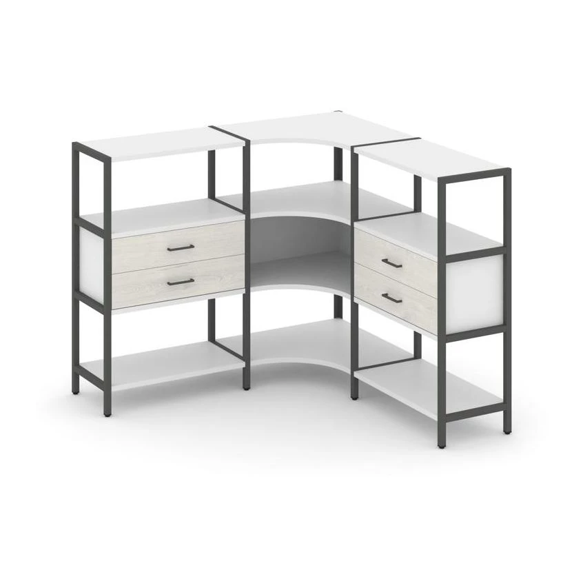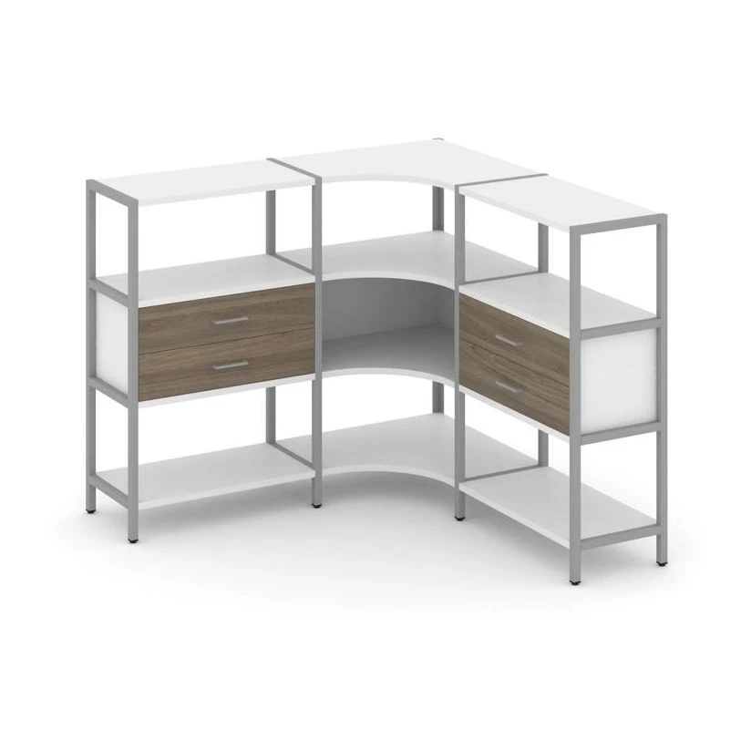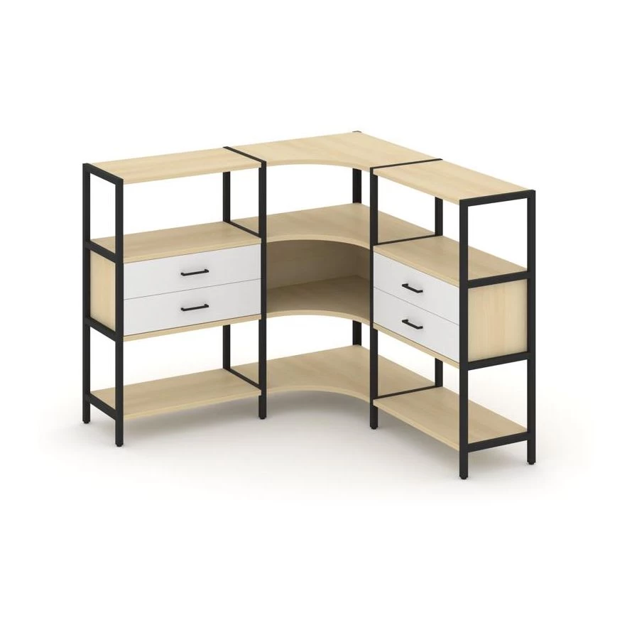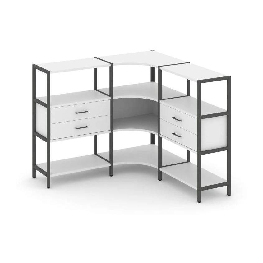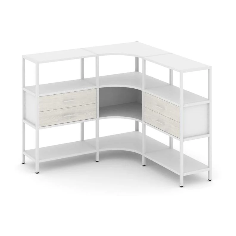 Трехсекционный угловой стеллаж трехярусный с ящиками 1590х1590х1246 Shelf System