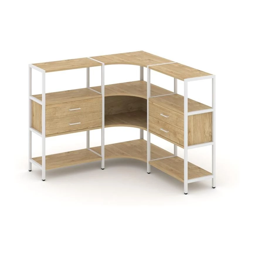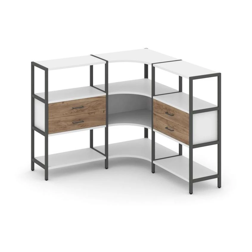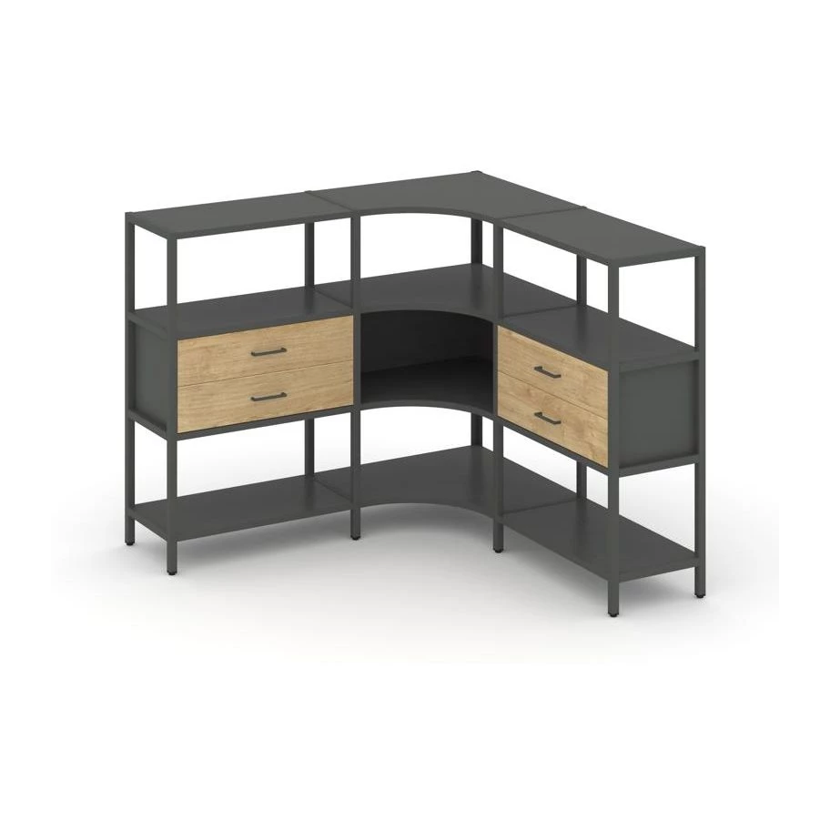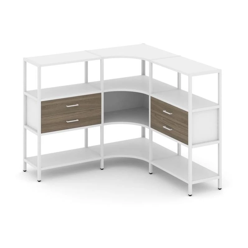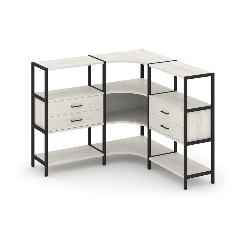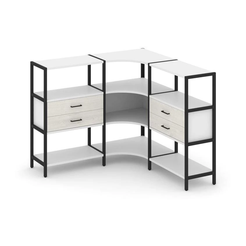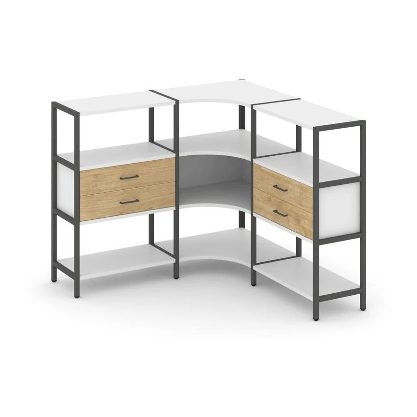 Трехсекционный угловой стеллаж трехярусный с ящиками 1590х1590х1246 Shelf System