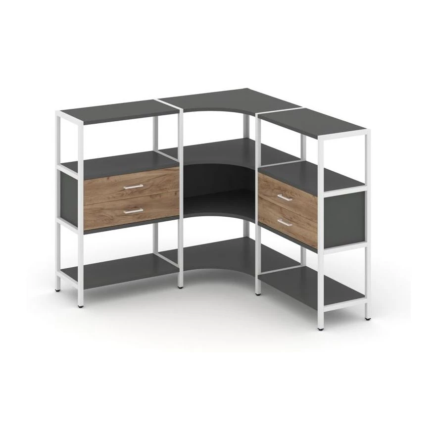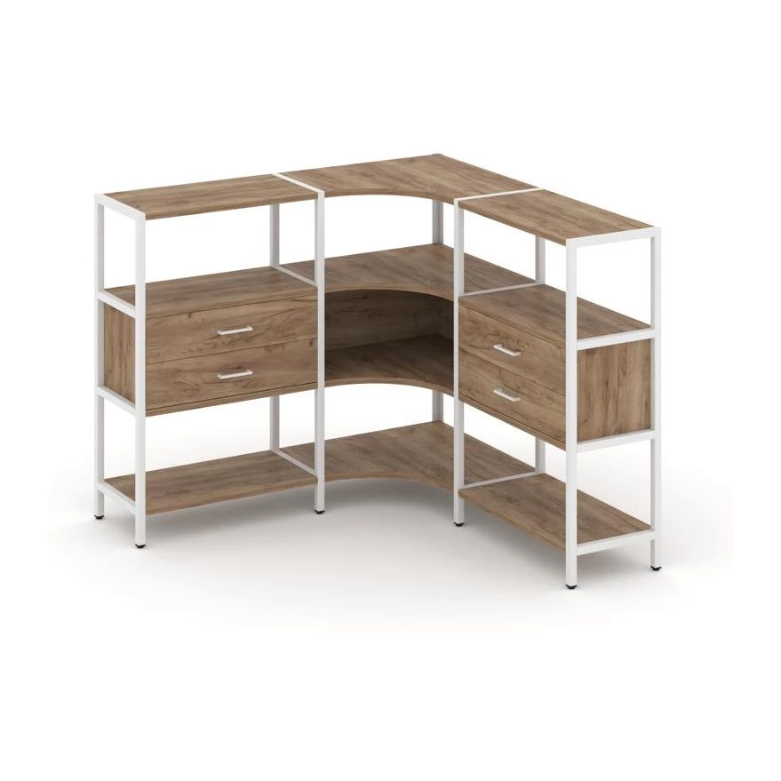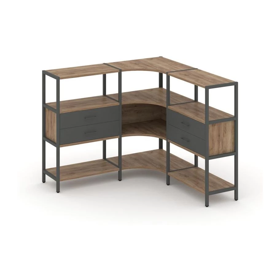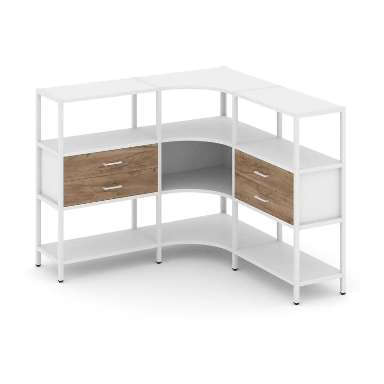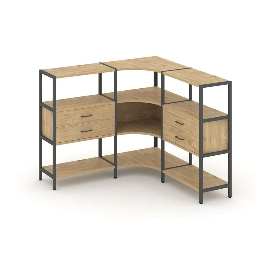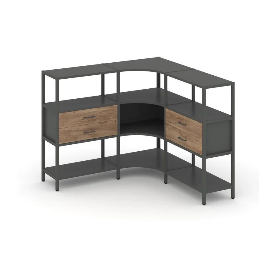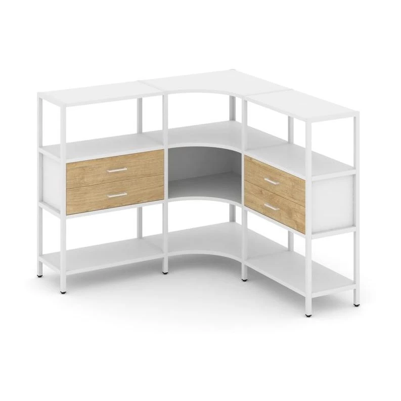 Трехсекционный угловой стеллаж трехярусный с ящиками 1590х1590х1246 Shelf System