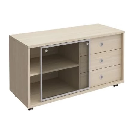 Тумба выкатная 3 ящика без замка стеклянная дверь купе в алюминиевой раме 120,2x50x66 Born